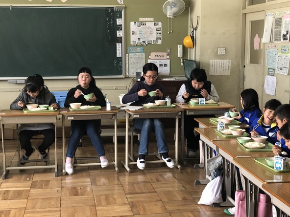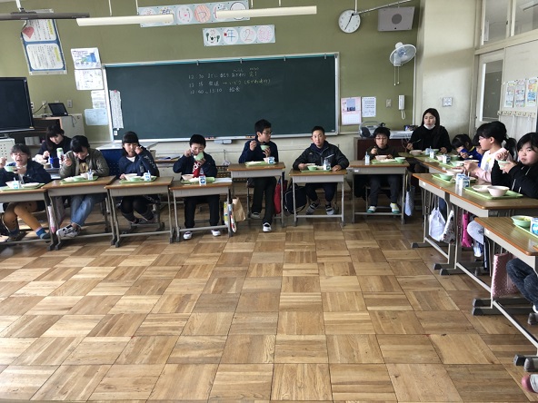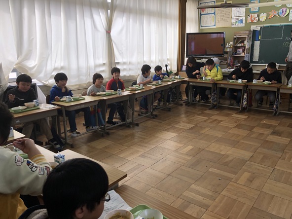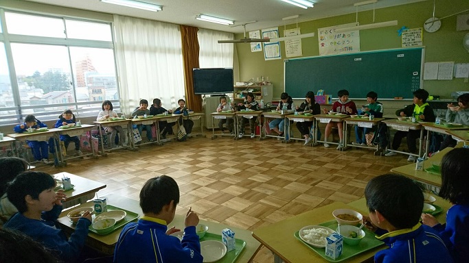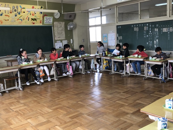 3/9(金)「6年生お別れ給食」が行われ、縦割り班で給食を食べました。