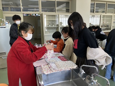 4年生が地域の方から巾着づくりを教わりました。