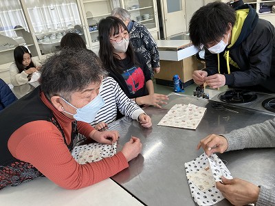 初めて針と糸を使う子もいるので、地域の皆さんがかなり丁寧に