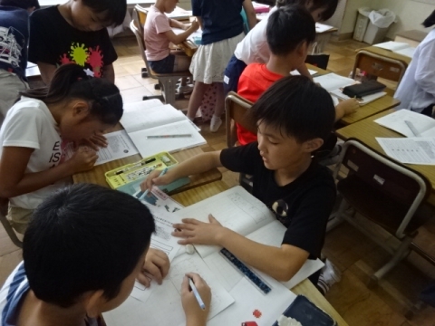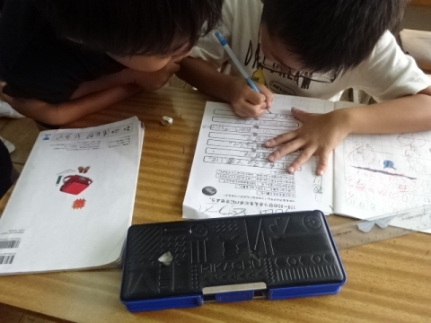 課題が早く済んだ子から、タブレットでプログラミング体験。
