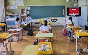 ※他校の児童も写っているので、ぼかしてあります。