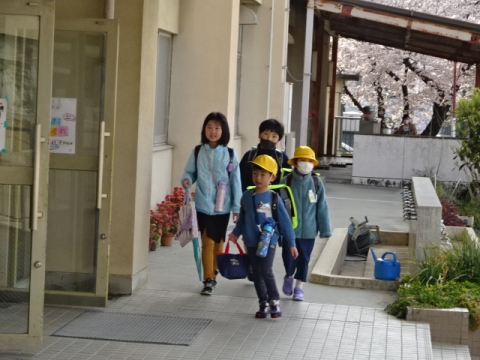 3年生 5年生 桜もずいぶん咲き、1学期のスタートかと見間違えしそうです。