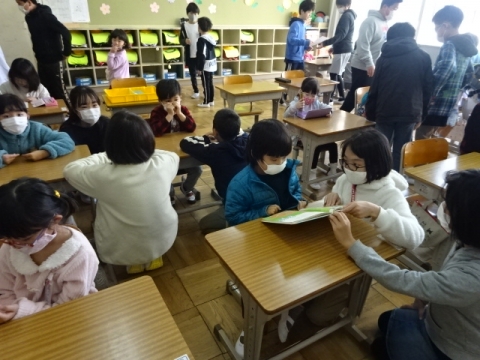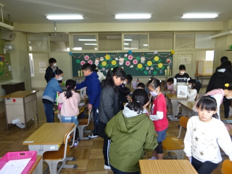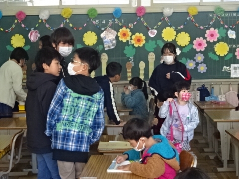 卒業式には出席しない1年生から4年生が、6年生とのお別れ式を