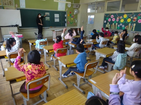 しっかり呼びかけをする1年から4年生の姿が、とっても大きく