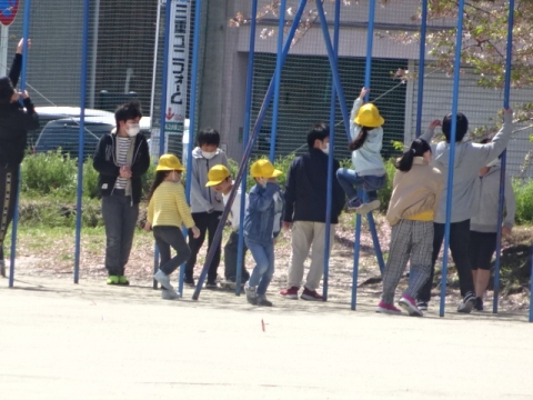 しっかり呼びかけをする1年から4年生の姿が、とっても大きく