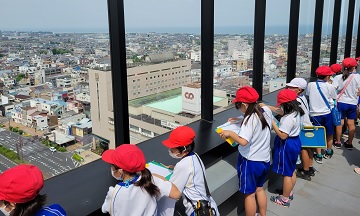 天候が良すぎて、少しかすんで見えてしまうところもありましたが、学校や市役所、自宅などの位置関係がつかめたのではないかな。