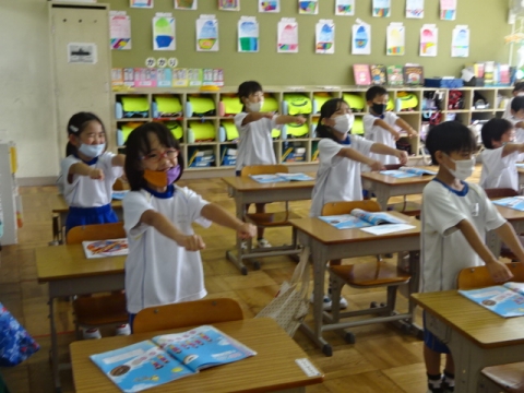 しっかり呼びかけをする1年から4年生の姿が、とっても大きく