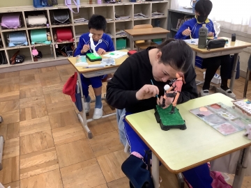 今、6年生は図工科で紙粘土制作「未来のわたし」に取り組んでいます。野球選手やサッカー選手などのスポーツ選手の他、料理人や飼育員など、なりたい将来の自分を思い描きながら黙々と制作に打ち込む姿がありました。中には将来の夢がまだ決まっていない子もいるかもしれませんが、そう遠くない未来の自分について考えるきっかけにしてほしいと思います。