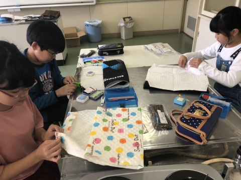 3年生 図工の作品バックを写真にとって先生におくり、互いにタブレット上で鑑賞できるようにしました。