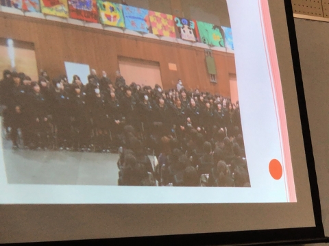 在校生から歌のプレゼントとお礼とお祝いの呼びかけを行いました。その中で次の年になりたい姿も発表しました。