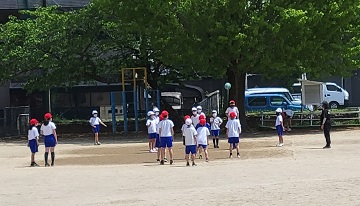 ※他校の児童も写っているので、ぼかしてあります。
