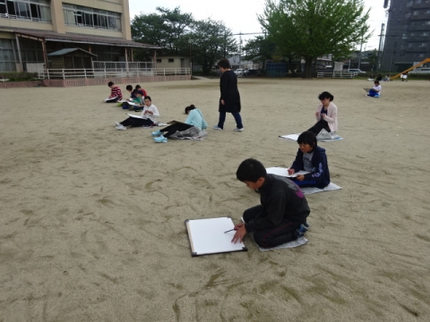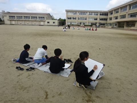3年生 5年生 桜もずいぶん咲き、1学期のスタートかと見間違えしそうです。