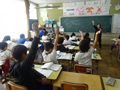 しっかり呼びかけをする1年から4年生の姿が、とっても大きく