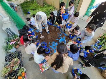 みんなでポップコーンのたねまきをしました。