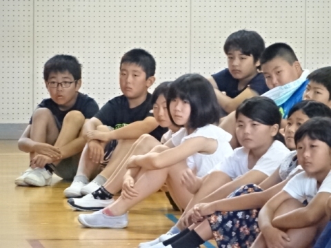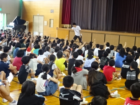 今日は、1年生から4年生までの子どもたちが6年生とお別れ式を行いました。