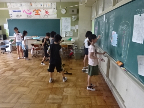 明日の卒業式の会場準備を4年、5年が作ってくれました