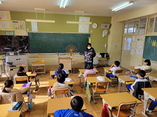 今日は、実物の糸車を見せてもらって、子どもたちは大喜びでした。