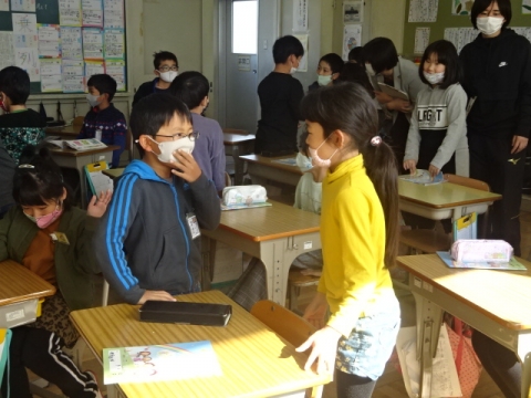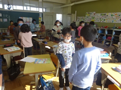 卒業式には出席しない1年生から4年生が、6年生とのお別れ式を