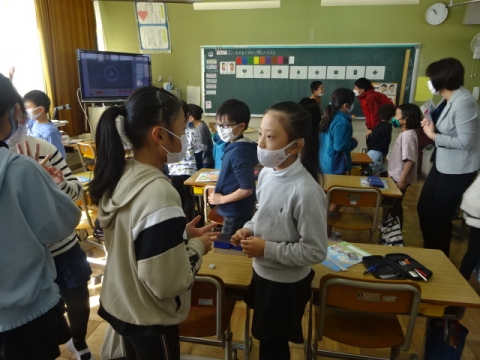 3年生はほしい形と色をたずね合って答える活動です。