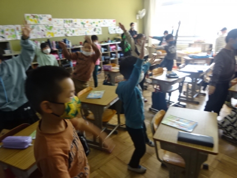 しっかり呼びかけをする1年から4年生の姿が、とっても大きく