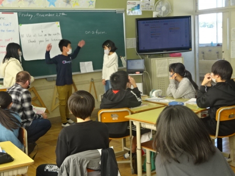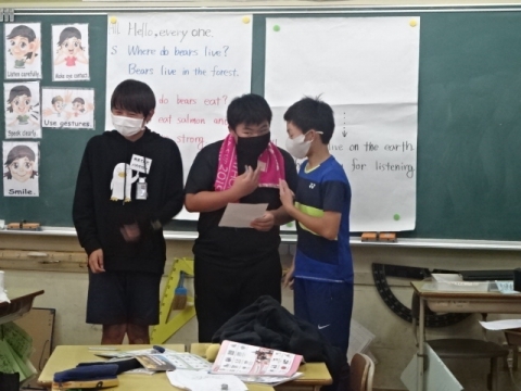 6年生はフードチェイン(食物連鎖)についてグループで具体的な生物の連鎖を考えてそれを英語で発表します。