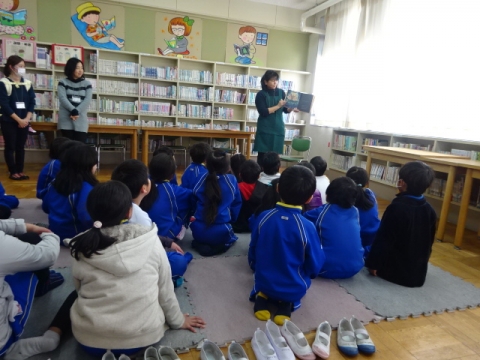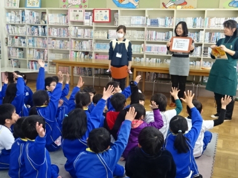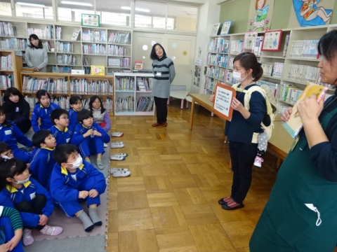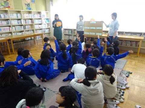 司書さんや図書館ボランティアさんにお世話になり、食べ物にかかわるお話の絵本の読み聞かせやクイズをしてもらいました。絵本はこんど給食の時間に放送で読み聞かせをしてもらうので、きょうは希望者です。
