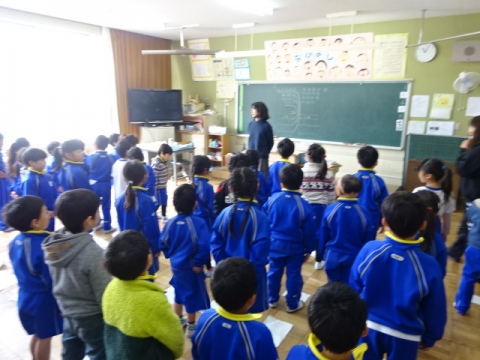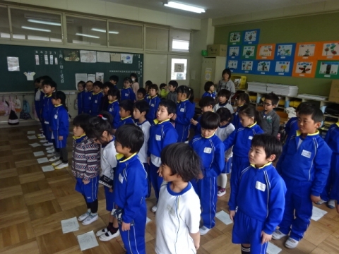 卒業式には出席しない1年生から4年生が、6年生とのお別れ式を