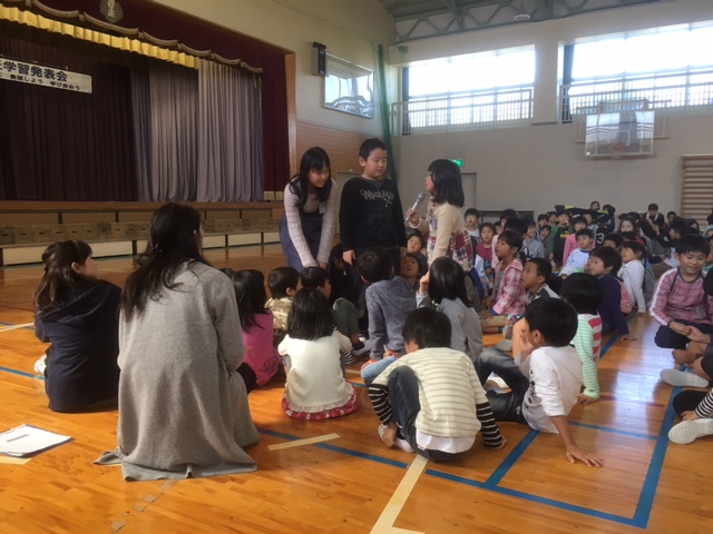 出し物の合間に、児童会役員さんが感想を聞いてくれていました。