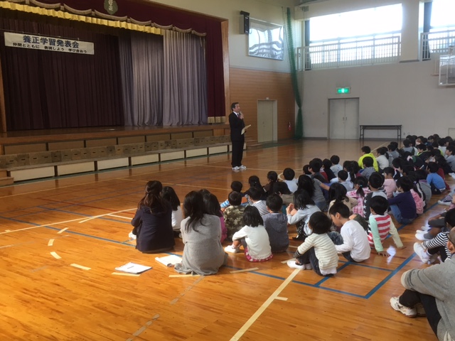 今日は、1年生から4年生までの子どもたちが6年生とお別れ式を行いました。