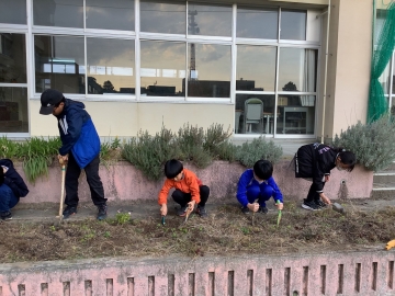 昨日の園芸委員会では、先月赤塚植物園さんからいただいたチューリップの球根を植えつけました。1年生でも各鉢に植えていますが、たくさんの球根をいただいたので、宿直員の原さんにもご指導いただき、昇降口横の学校園に園芸委員会の子どもたちが丁寧に植えてくれました。来年の4月、新1年生が入学を迎えた頃に色鮮やかなチューリップが咲いてくれると嬉しいです。