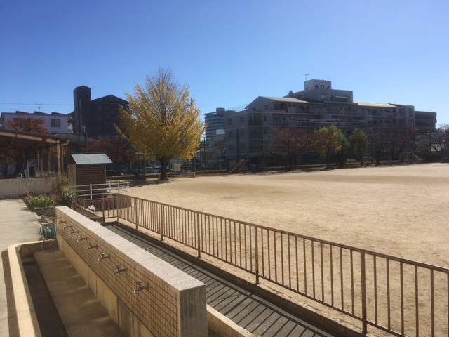 休み時間には、落ち葉を上に放り投げて遊んでいる子の姿も見られます。