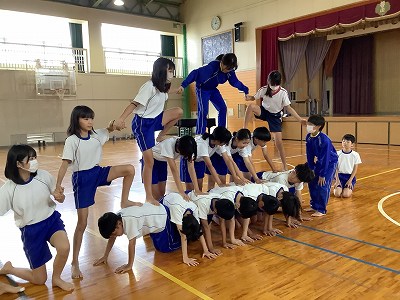 5、6年生の組体操は、難度の高い技や、その技の精度が日々上がっ