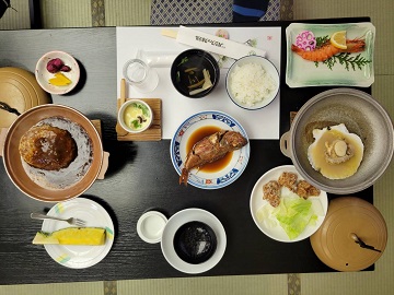 ホテルにて、美味しい夕食をいただきました。明日もあるので、ゆっくりと休んでくださいね。