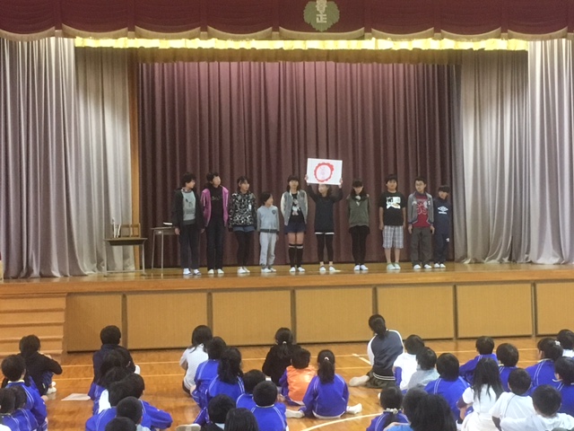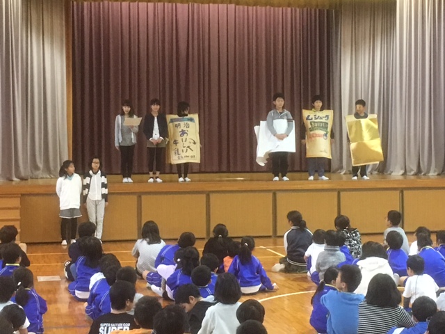 校歌を歌った後、児童会役員から12月の生活目標の発表がありました。