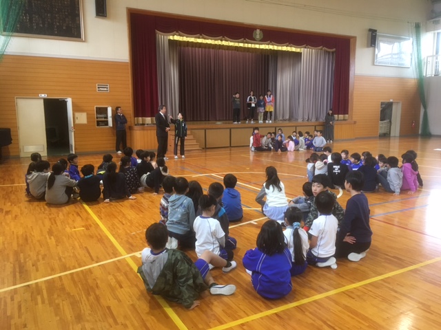 今日は、1年生から4年生までの子どもたちが6年生とお別れ式を行いました。