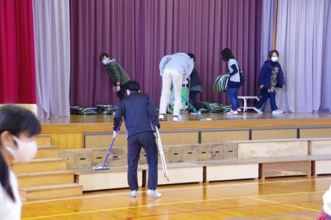 明日の卒業式の会場準備を4年、5年が作ってくれました