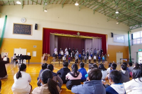 卒業式には出席しない1年生から4年生が、6年生とのお別れ式を