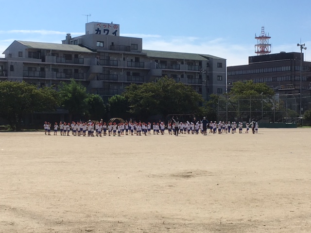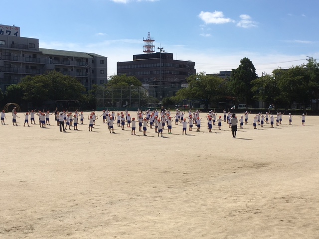 13(水)運動場での練習が本格的に始まりました。とても暑い日ざしのなか、がんばっています。
