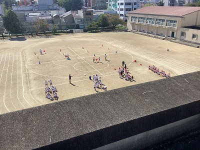 上から子どもたちの演技を見ると、広い運動場で、自分の場所や