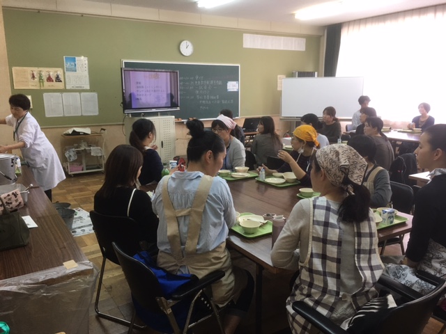 PTA教養部主催の給食試食会が開かれました。1年生と転入生の保護者対象で毎年開かれています。
