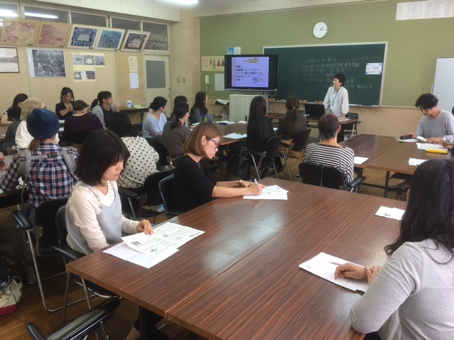 給食後は、新町小学校の中野先生のお話です。