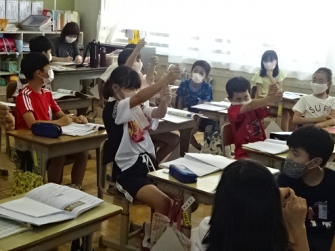 しっかり呼びかけをする1年から4年生の姿が、とっても大きく