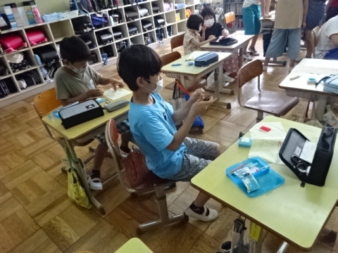 課題が早く済んだ子から、タブレットでプログラミング体験。