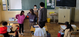 ※他校の児童も写っているので、ぼかしてあります。