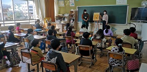 11日に図書館ボランティアの人たちが読み聞かせをしてくれました。