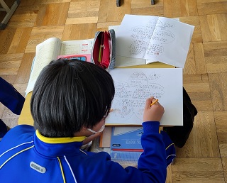 国語の学習では、自分のおすすめの本の紹介文を考えて、伝わりやすいように作っていました。