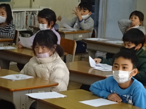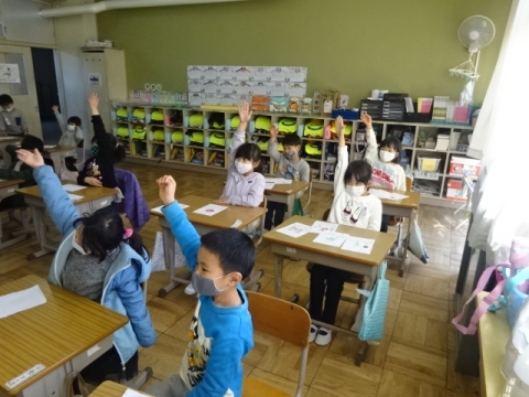 月曜日のお別れ式に向けて、1年から4年生が呼びかけや式の流