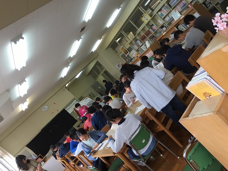 6年生は、図書室で司書の先生からオリエンテーションを受けた後、静かに読書をしていました。