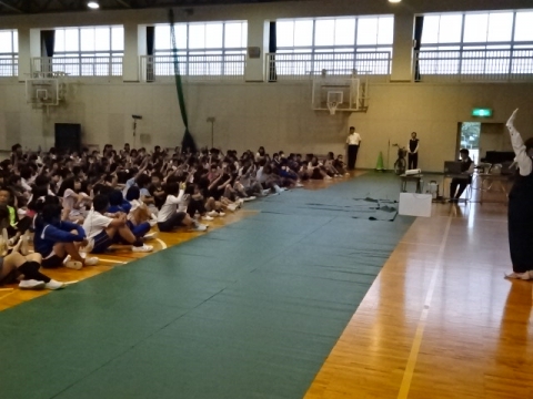 今日は、1年生から4年生までの子どもたちが6年生とお別れ式を行いました。