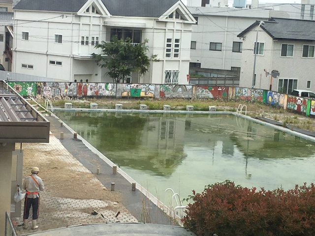 プール掃除で、何が一番大変かというと、草抜きなんです。